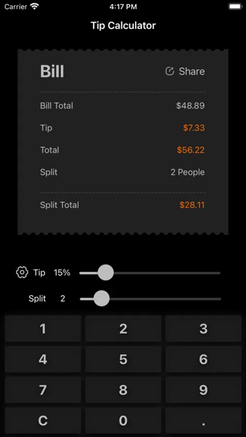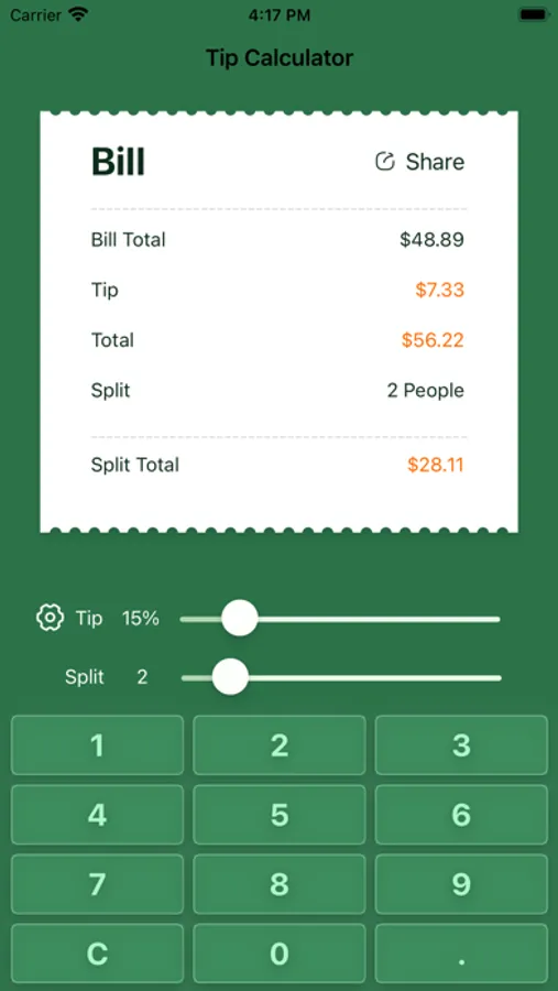 Tips Calculator is a tool app that helps you to quickly calculate bill tips, total, and split.