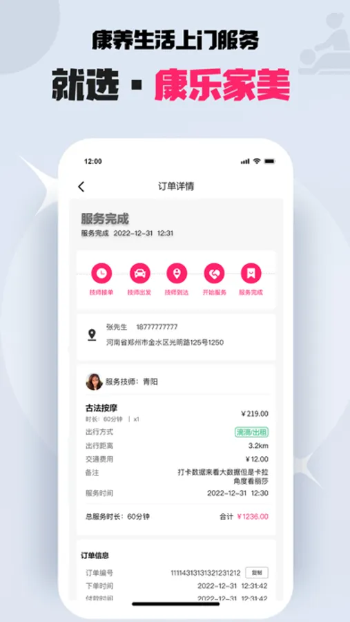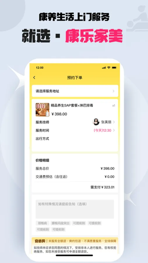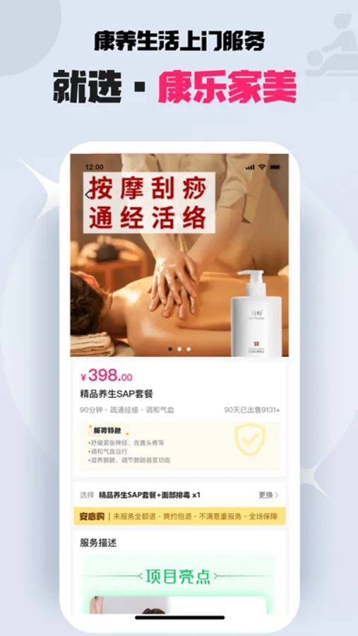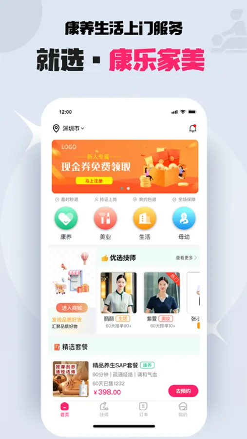 【康乐家美】是一家以康养、生活、美业、母幼主项,个人定制型的o2o平台,本平台提供专业、正规、安全、便捷的24小时上门服务。
