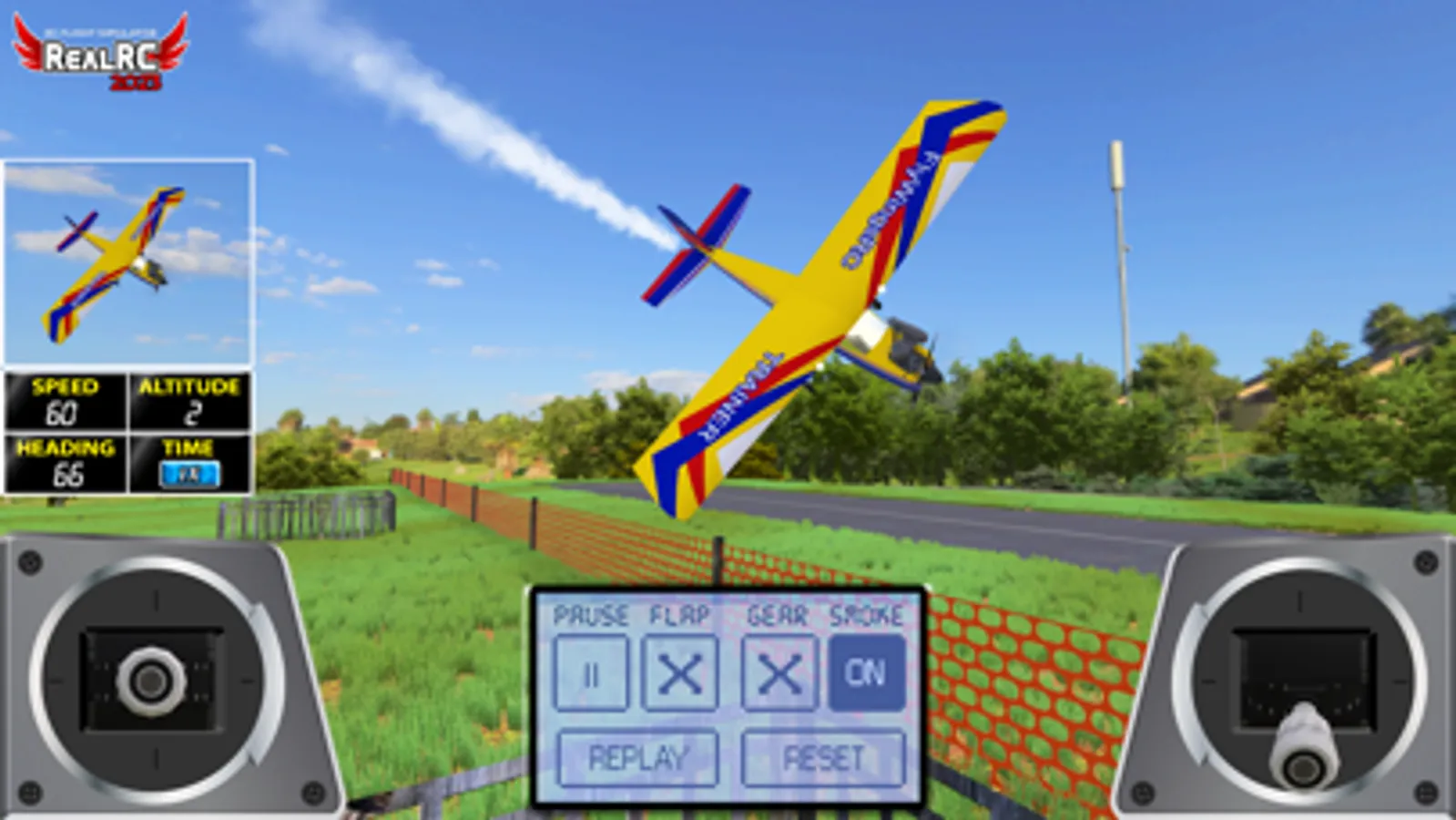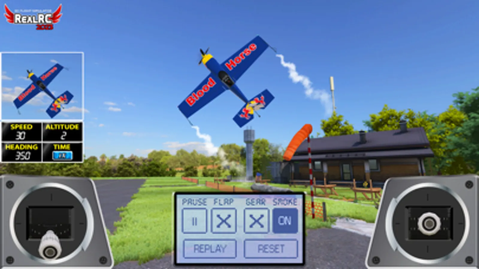 We included the virtual RC Controller on the screen fully configurable and a physics algorithm very close to what you can do with your real RC plane.