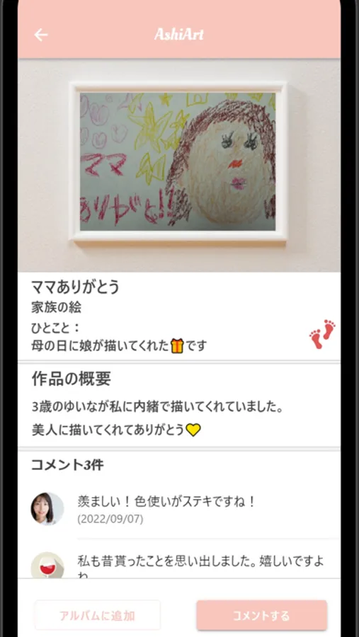 Just snap photos of your children’s work and register them in the app. Not only will you be able to look back on your children’s artwork at different ages, you can also save comments made by yourself and other family members.