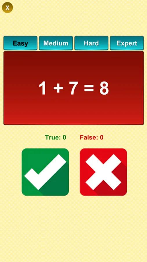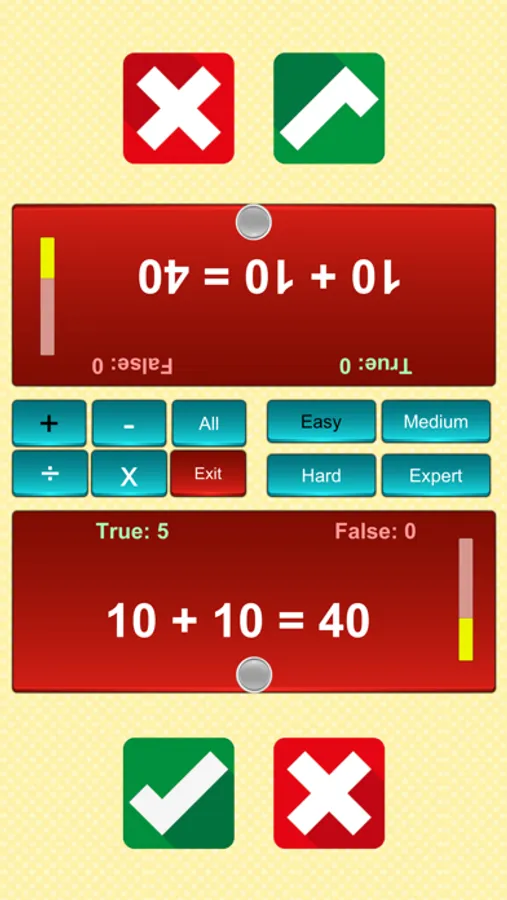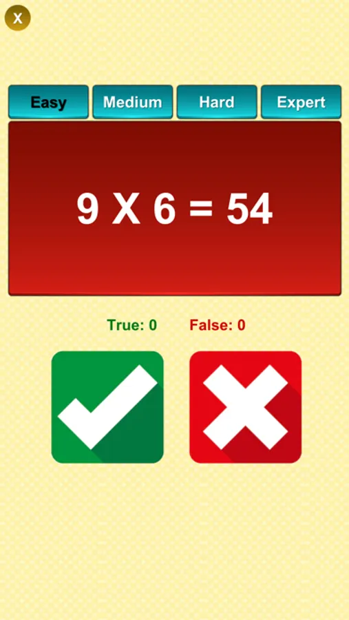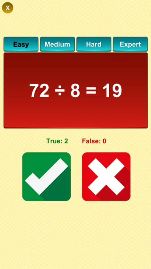This math true false application is really easy way to learn math tables. They just need to identify that given math equation is true of false by pressing button.