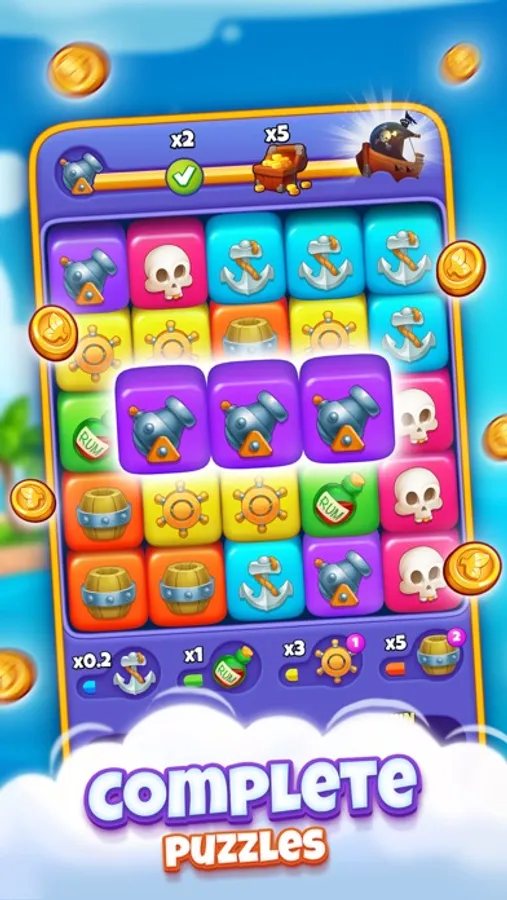 Combine at least three cubes to fill fruit bars in order to win rewards!