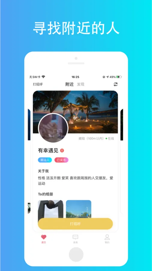 基于位置服务打造的附近查找功能,能为你寻找身边的潮汕胶几人,打消距离顾虑