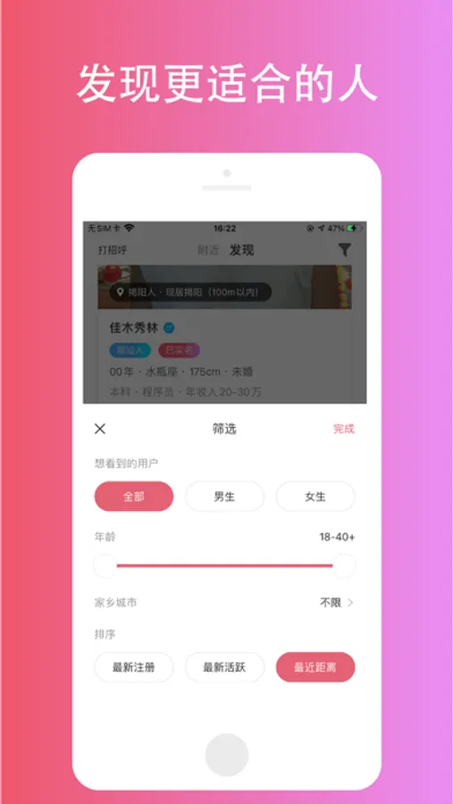 每日推荐优质的单身男生/女生,总有一个让你怦然心动