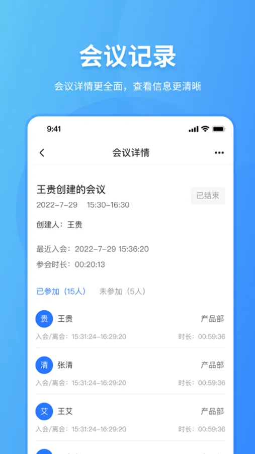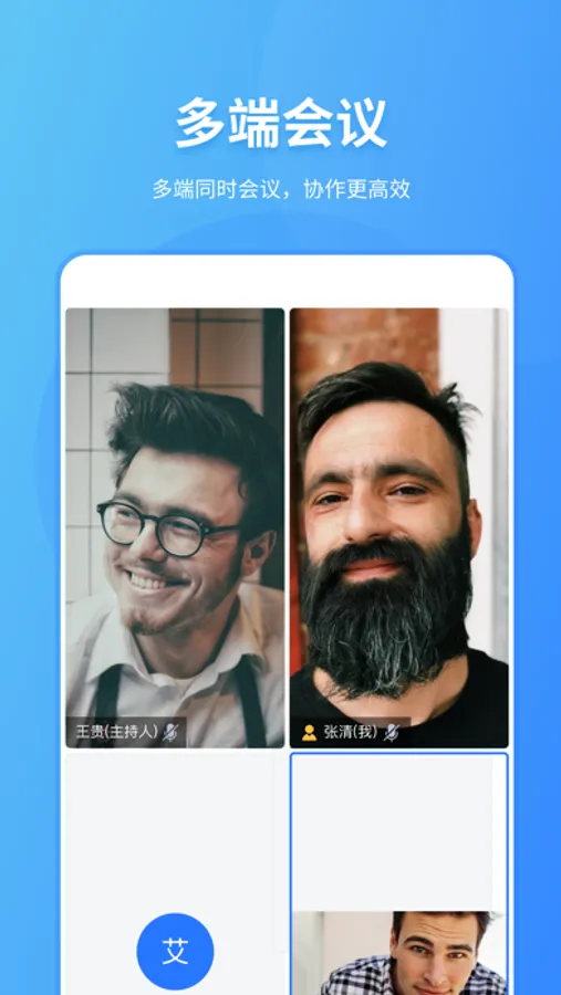 【会议管控】会议内有主持人、演示者和听众的三级权限管控机制。主持人可以指定演示者、管理参会人,保证会议有序进行。