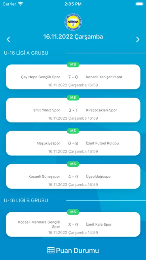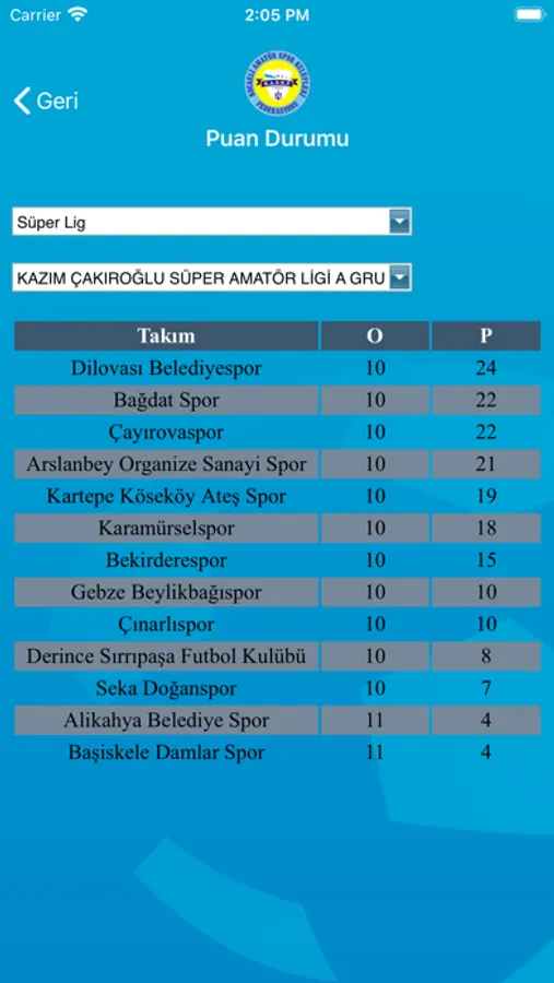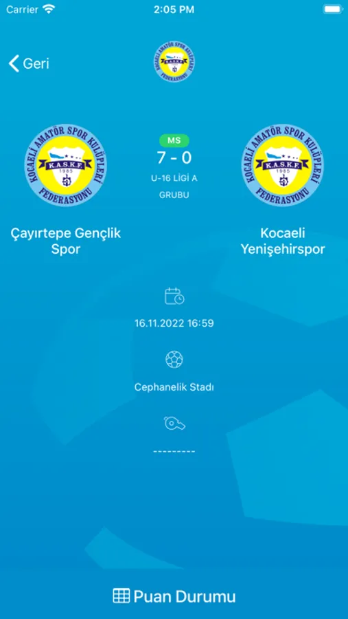 Kocaeli Amatör Spor Kulüpleri Federasyonu puan durumu, canlı sonuç ve fikstür.