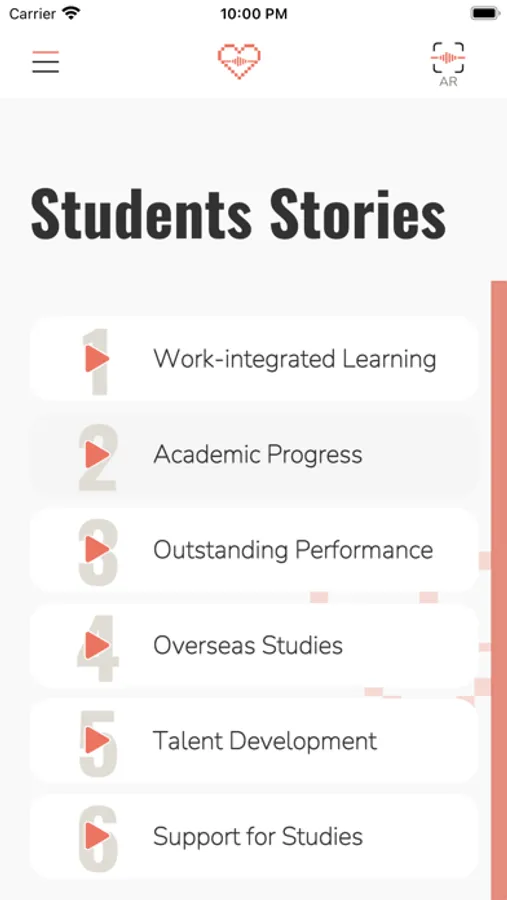 在應用程式中,您可以觀看「學生感謝心聲」短片,共有6章: