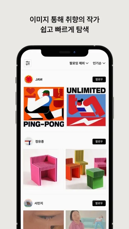 - 취향의 아티스트를 작품 이미지를 통해 빠르게 찾아보세요.