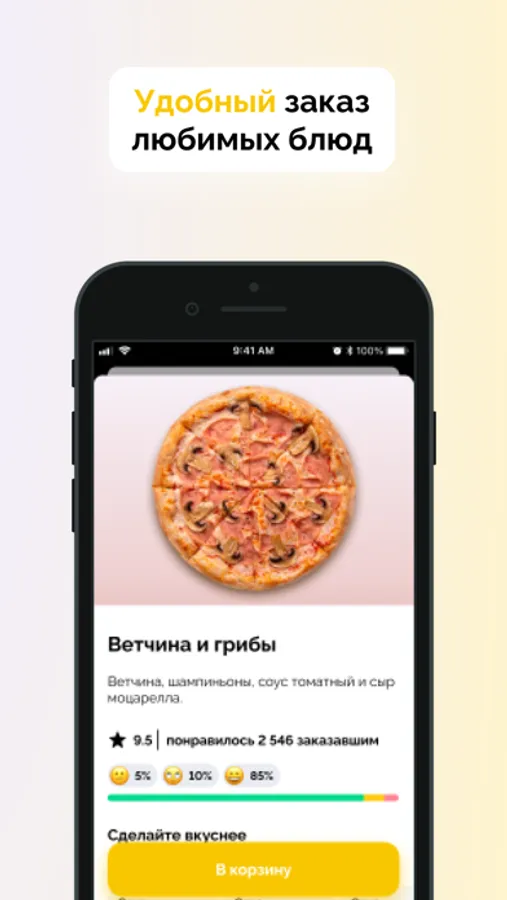 Мы быстро приготовим ваш заказ, оперативно передадим его курьеру и привезем вам пиццу до двери еще горячей. Если что-то пойдет не так, то пицца в подарок.