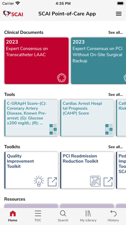 The Society of Cardiovascular Angiography and Interventions (SCAI) Point of Care App is your resource in the Cath lab and in the clinic. Use it for quick and easy reference to SCAI clinical documents and interactive tools such as the SCAI cardiogenic shock classification tool, risk calculators, and key treatment algorithms. The app allows users to bookmark important pages, take notes on key information, and share content with colleagues or patients. SCAI develops clinical documents and quality resources on a variety of topics related to interventional cardiology; the app includes more than 20 of society’s most recent guidance documents. Download it today and begin using these tools to improve your patient care.