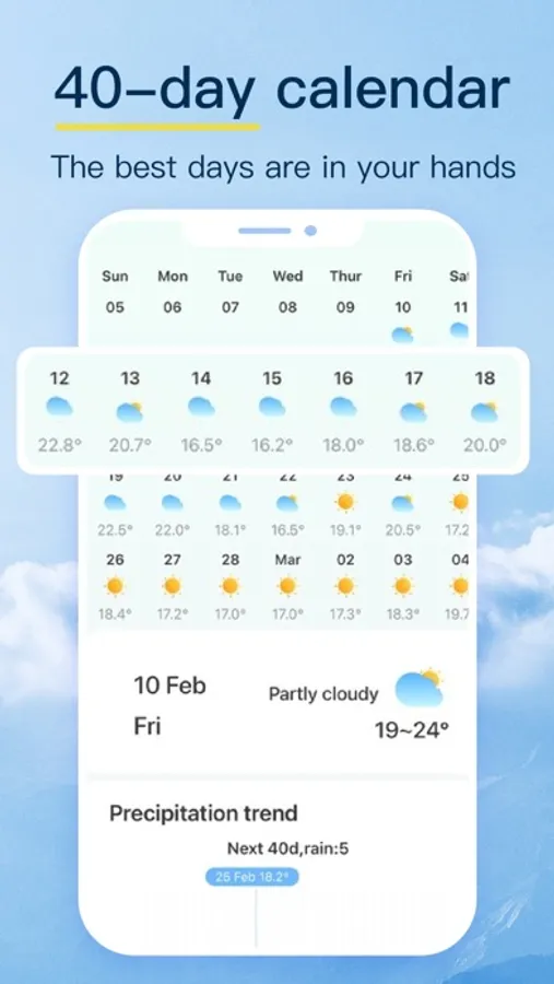 Welcome to our weather forecasting app, providing you with an unprecedented range of weather information, allowing you to make informed decisions for the next 40 days.