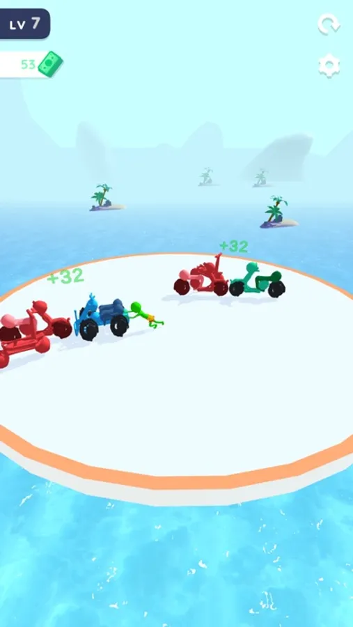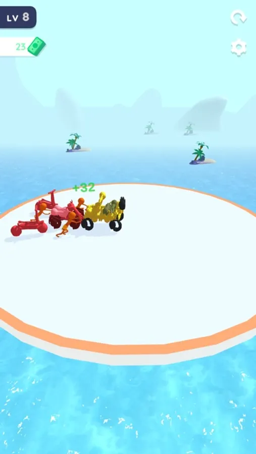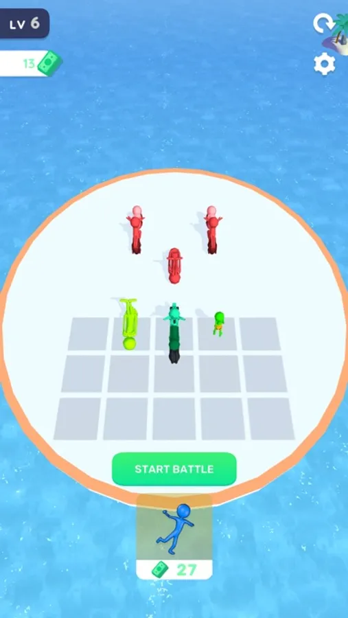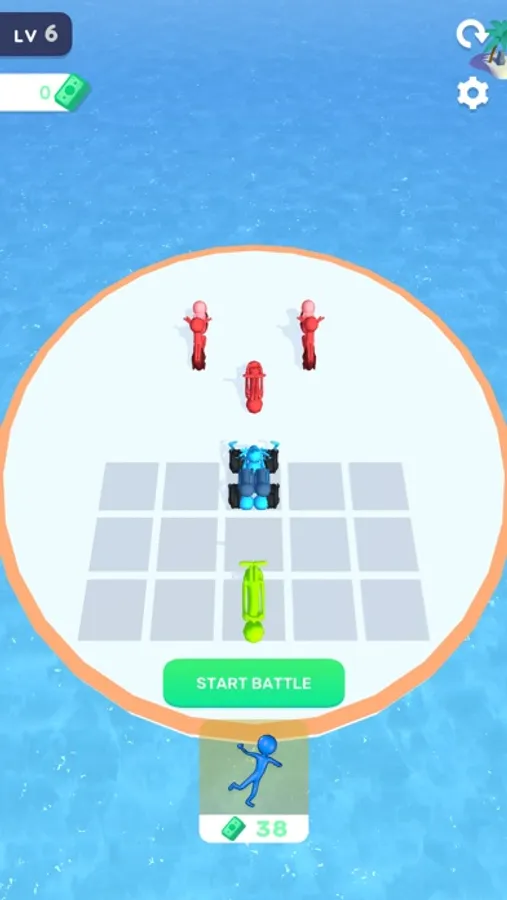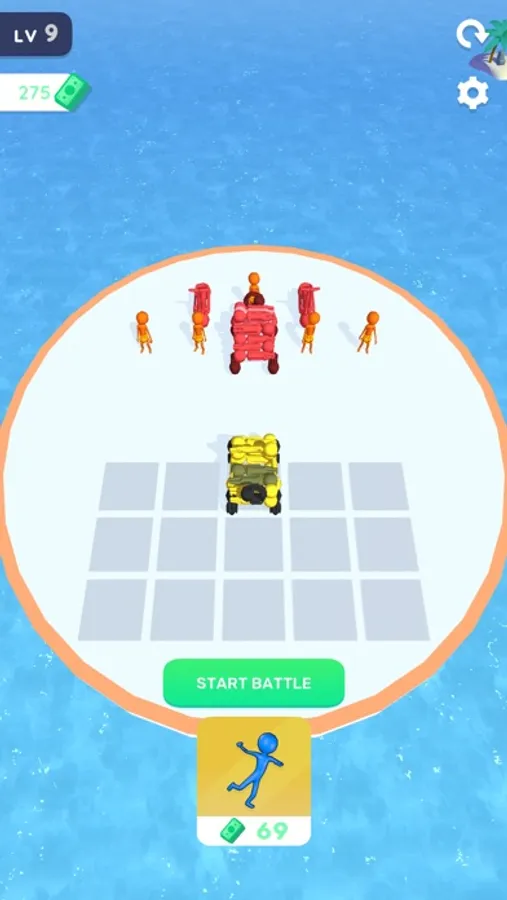 The main goal is to push all vehicles to throw them from the platform. Merge your fighters to build human vehicles and increase their power by keep merging! Remember to placed your vehicles according to the best strategy. Be brave and battle like a strategy master!