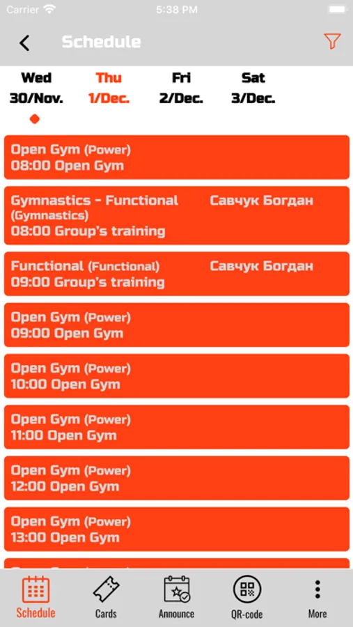 Registration in the club, viewing the schedule and season tickets, signing up for training.