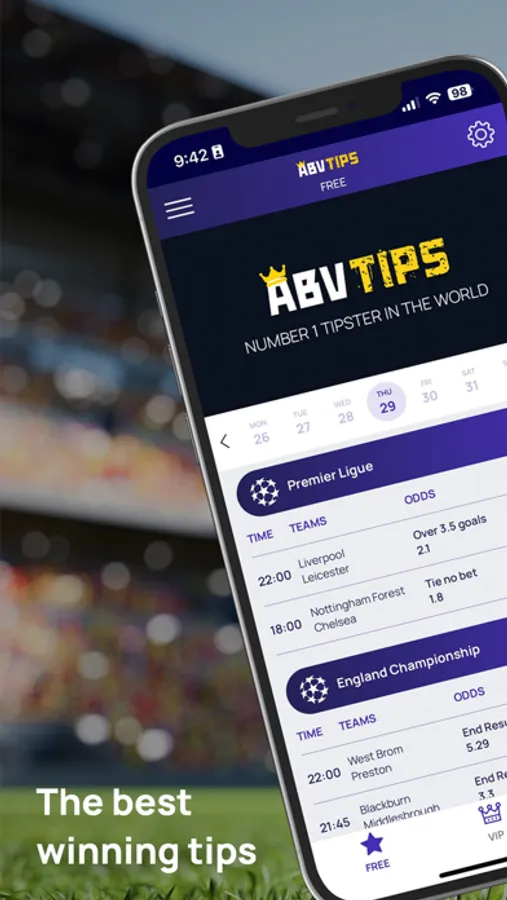 AbvTips is the biggest and most successful platform in Europe for FREE football and sport tips and predictions. Our tips are based on upcoming sport meetings from all around the world. Our team does the most deep research and reaches you with tips based on every single detail.