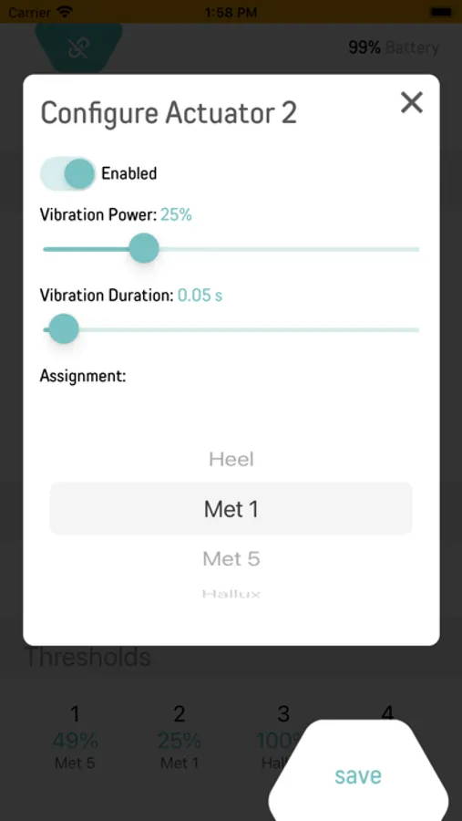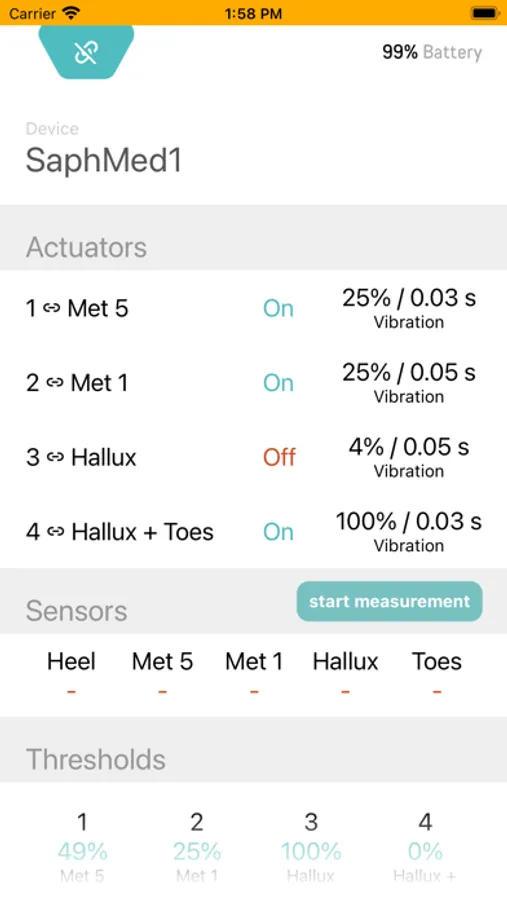 The Suralis App helps you unfold the full potential of your feeling leg prosthesis. You can change settings like vibration intensity and duration, read out sensor values and pedometer data and stimulate your phantom limb map.