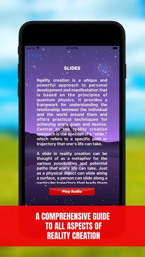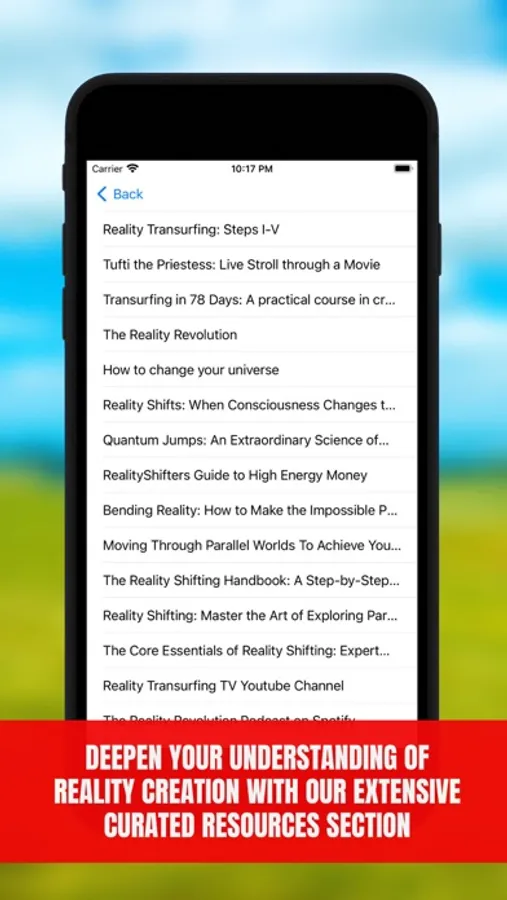 But it doesn't stop there. We've also curated an extensive Resources section within the app. Discover a wide range of reality creation books, recommended readings, and other relevant materials to deepen your understanding and expand your knowledge. And as a special bonus, anyone who makes a purchase will receive audio narration of the core reality creation concepts, allowing you to absorb this transformative wisdom even on the go.