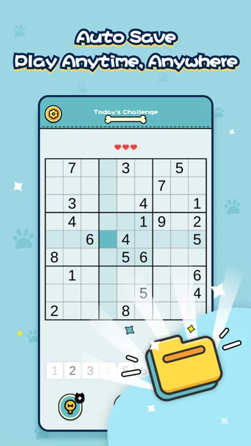7. Auto-save. If you leave a game with numbers unfinished, it will be saved. Continue playing your Sudoku puzzle game anytime.