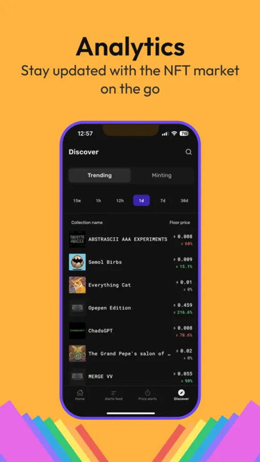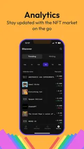 RoverX, the NFT app, has a ton of features to help traders to analyse NFT projects & develop NFT portfolio by making decisions based on data, not FOMO. On our NFT trading app, users can discover new collections in the Trending and Minting tabs, make use of preset strategies, or even create their own using Advanced filters.