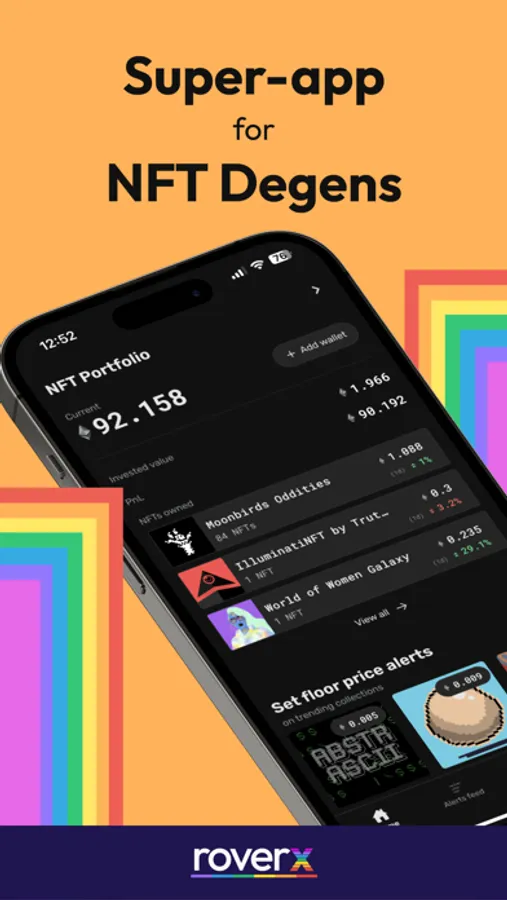 The RoverX app helps NFT traders track their NFT portfolio & stay up-to-date with the latest developments in their portfolio across wallets and all the latest NFT market trends..