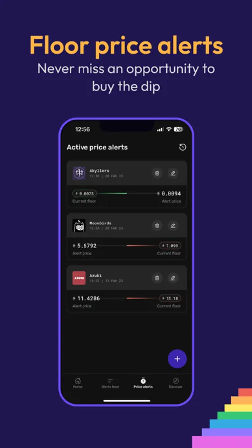 Say “no” to missing pumps & selling at the dip. Get instant NFT alerts right when a collection reaches your target floor price.