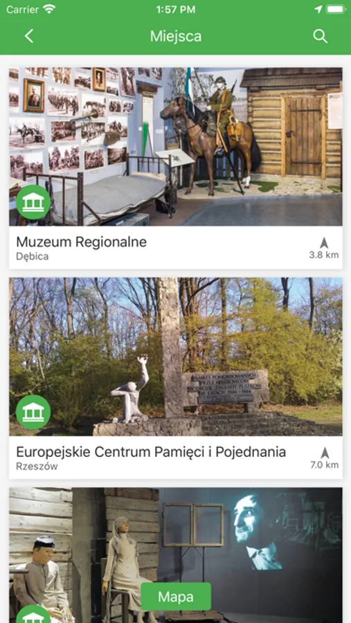 Do każdego szlaku pieszego prezentowanego w aplikacji przyporządkowane są, znajdujące się w jego pobliżu, miejsca atrakcyjne pod wzlędem krajoznawczym - z zakresu kultury (świątynie, zamki i pałace, muzea, itp.), przyrody (parki narodowe, rezerwaty, zbiorniki wodne itp.) oraz zagospodarowania turystycznego (schroniska, wiaty, campingi, itp.).