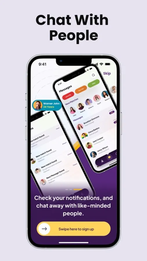 - Dating: swipe right to get to know each other, and left to skip the profile