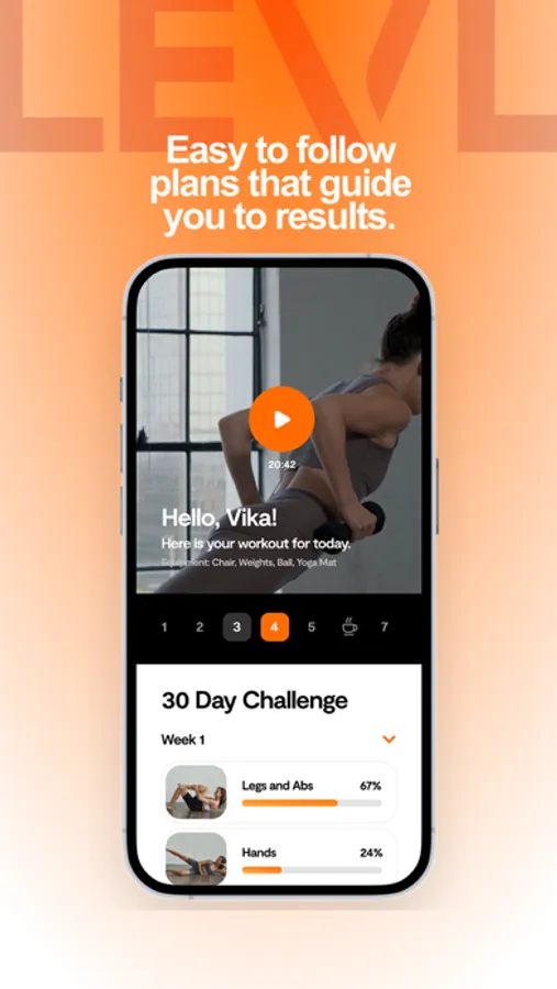 • New to LEVL? Download the App and get started with a free trial to get your custom plan and access to classes from any device.