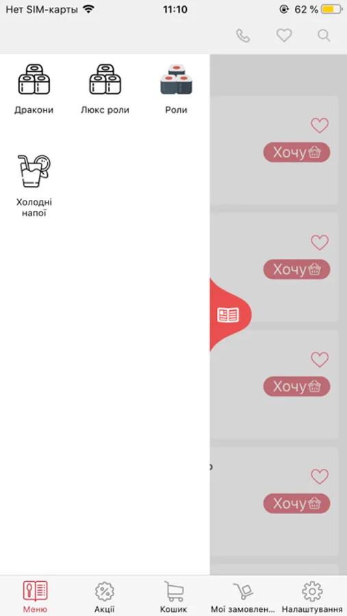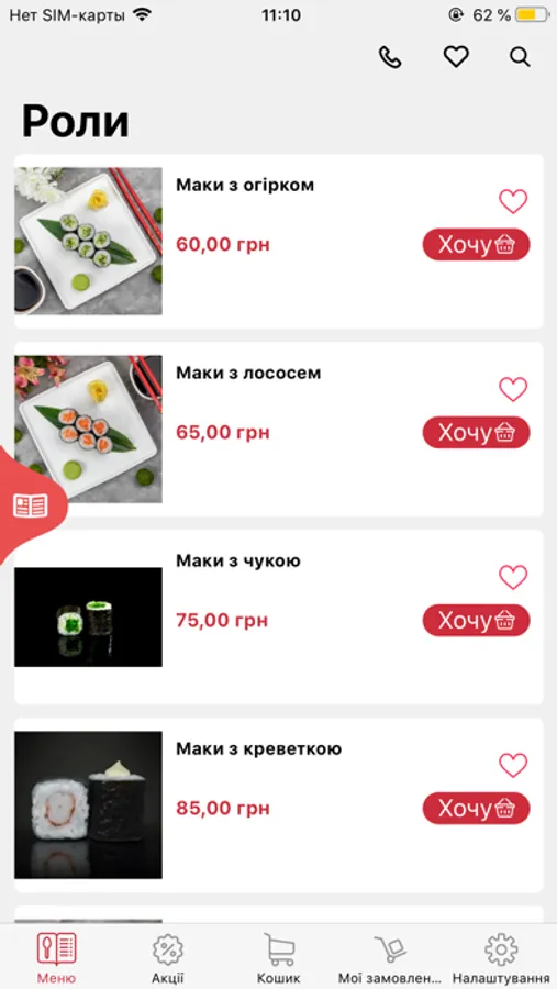 З додатком Satoshi замовляти роли, суші легко, оскільки в додатку доступні детальні описи і фотографії страв