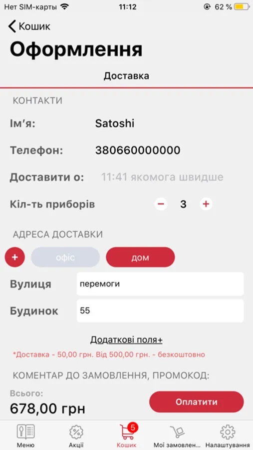 Додаток Satoshi - це зручний і швидкий сервіс доставки.