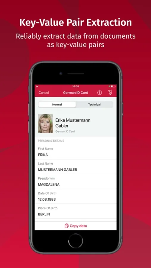 Enable any smartphone or wearable device to extract data as key-value pairs from structured documents (e.g., ID card, passport & many more). Prevent the error-prone manual data entry and start transferring data automatically - with your smartphone.