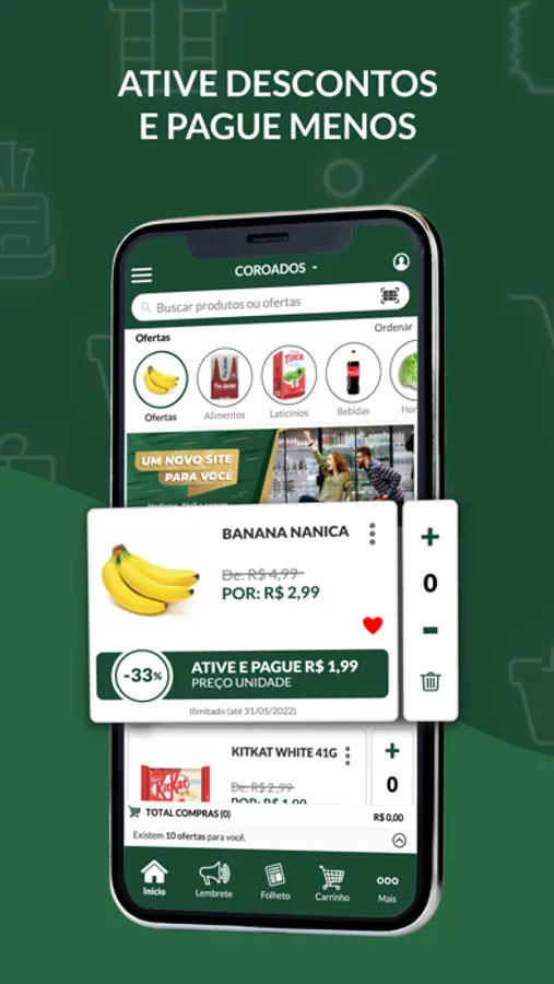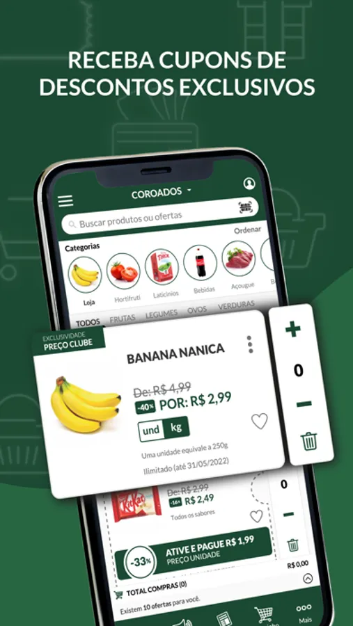 Viu quantas vantagens? Comece a aproveitar tudo isso, fazendo o download gratuito do aplicativo Coroados Supermercado.