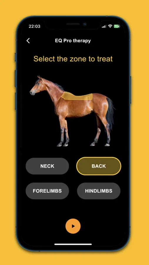 - Assisted Treatment Modality lets you select which area of the horse you want to treat, it then proposes treatable pathologies and show specific guidelines with videos on how to perform the selected treatment properly. Suggested power output and treatment time will automatically load on the treatment screen