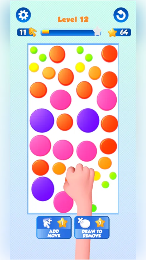 Draw and Merge is puzzle game where you are expected to clear the board by merging the button-shaped discs.