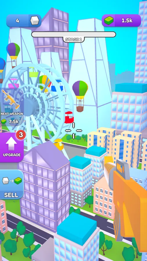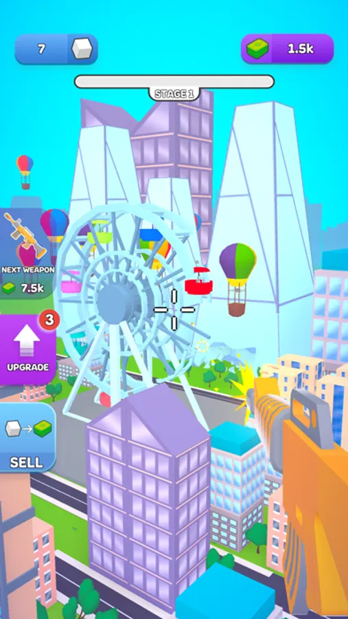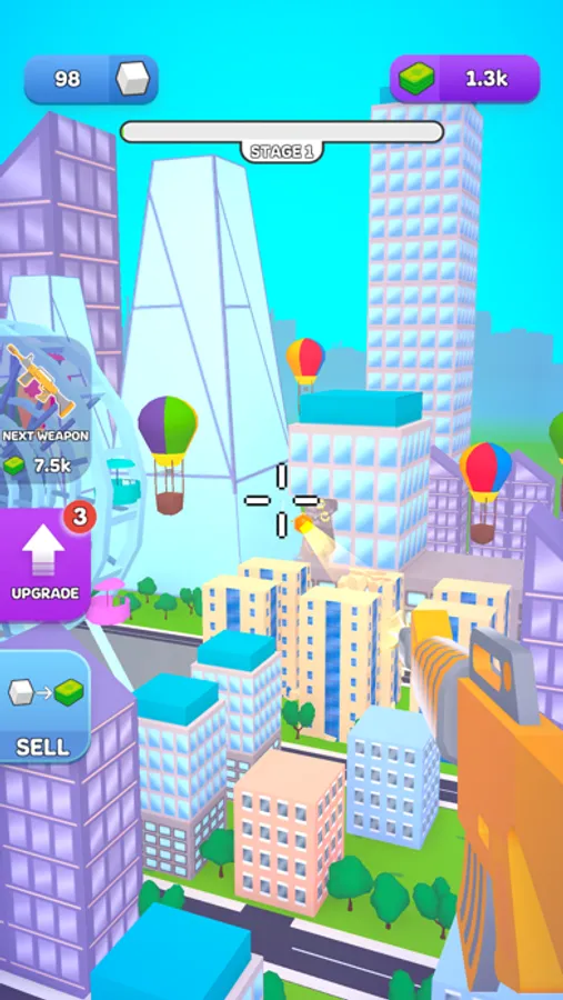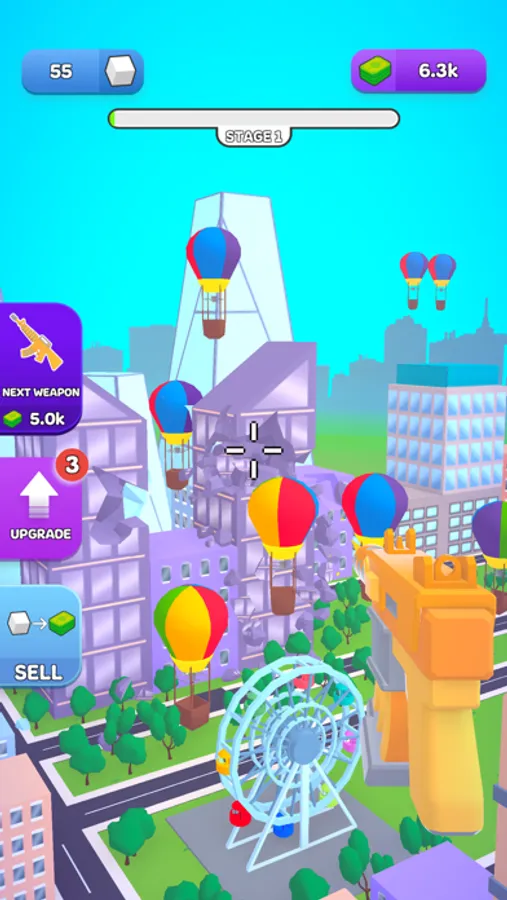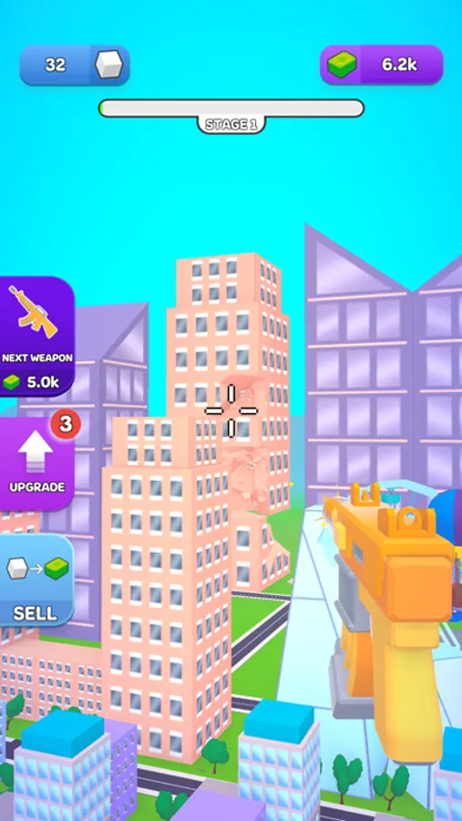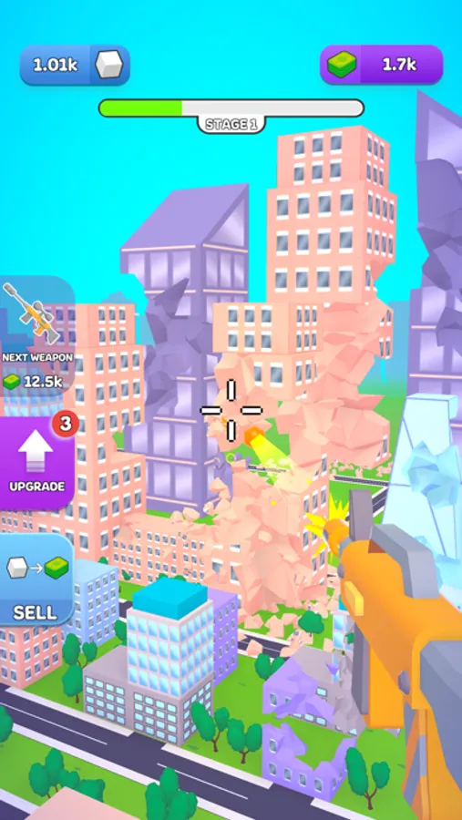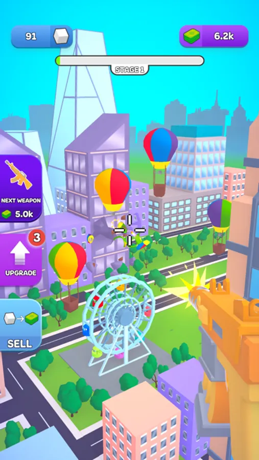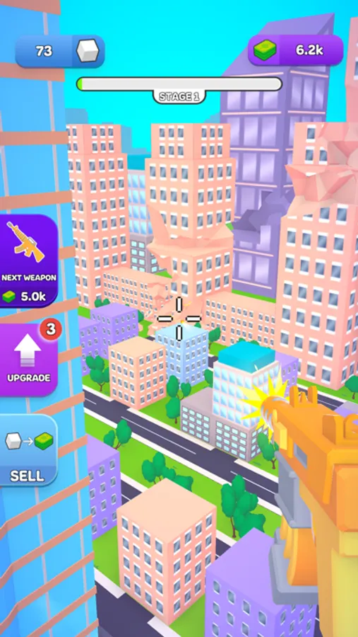 Shoot around and try to destroy the city. You can destroy parks, sky-high buildings, and much more stuff. Unlock and collect all the weapons and boost your power by buying upgrades. Show your might to the world by destroying everything!!