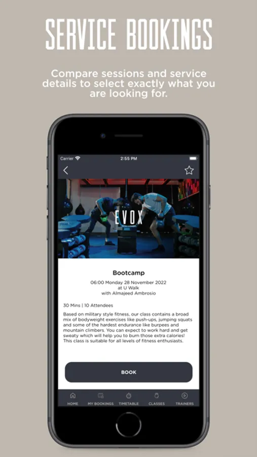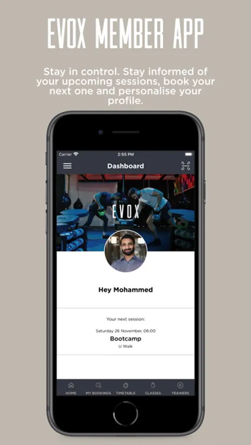 The EVOX APP allows members to manage their membership profile, book group classes, book personal training and send club feedback.