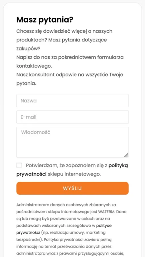 Założyciel i załoga firmy działają na rynku od 1998 roku. Markę WATERM tworzymy od 2010 roku. Zajmujemy się sprzedażą, montażem i serwisem urządzeń oraz systemów z zakresu techniki grzewczej i instalacyjnej dla budownictwa mieszkaniowego i usługowo-przemysłowego.
