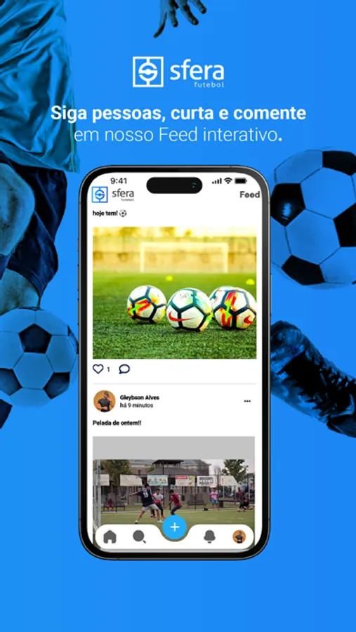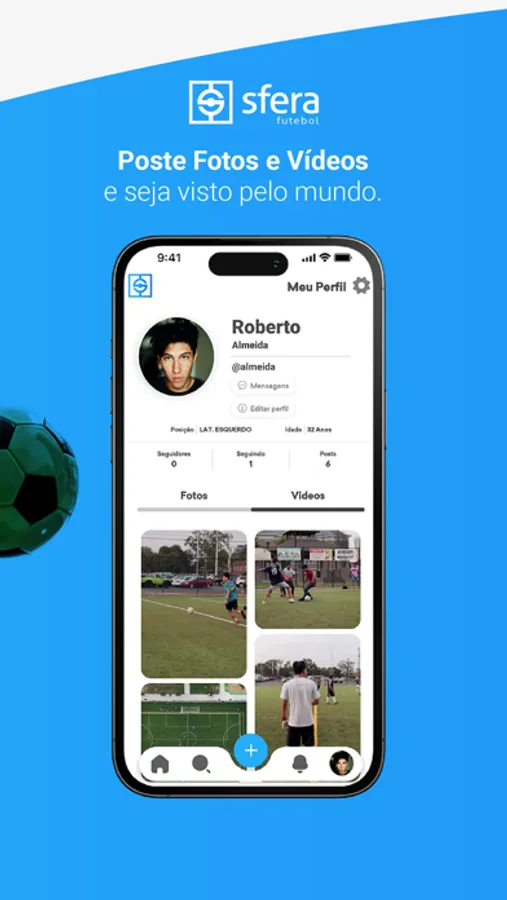 Chegou sua oportunidade de mostrar seu talento. Poste suas fotos, vídeos e converse com seus amigos sobre o que você ama, FUTEBOL. Você poderá ser visto e CONVOCADO por nossa rede de olheiros por todo o Brasil. Mostre suas habilidades no Sfera e seja um atleta visto pelo mundo.