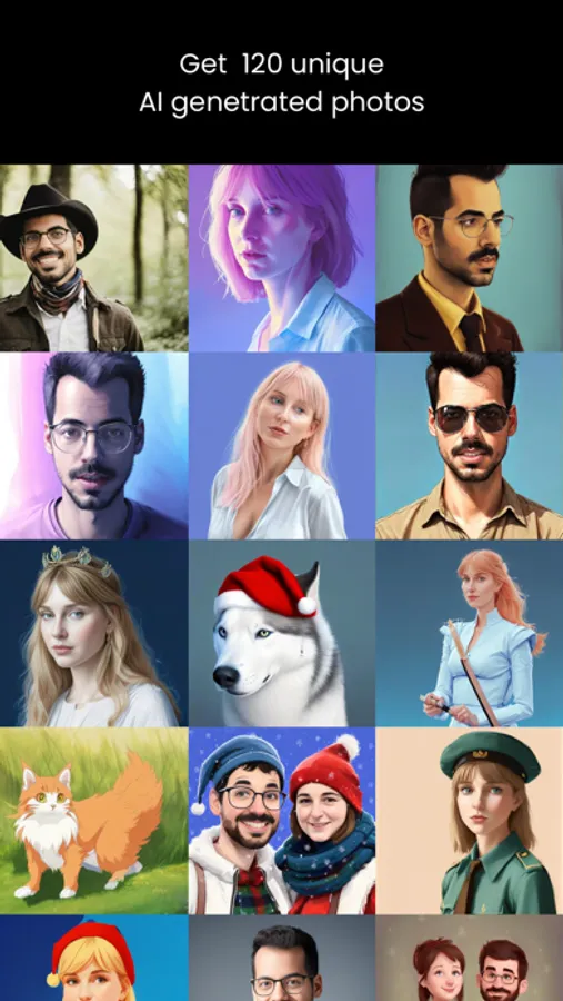 With AI Photo, you can create 120 unique new photos of yourself, your pet, or a loved one!