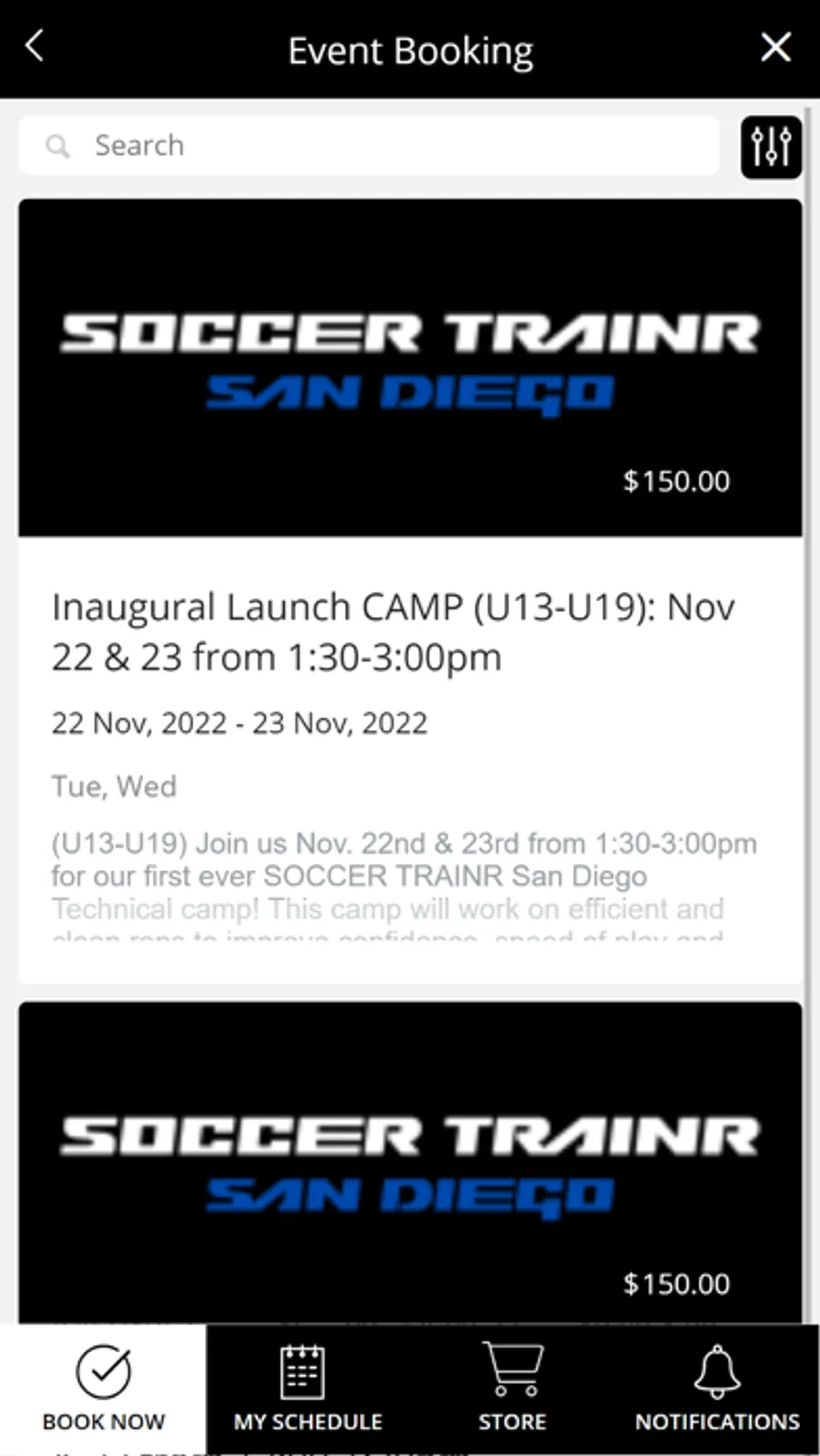 Download the app to view schedules & book sessions at Soccer TrainR – San Diego!