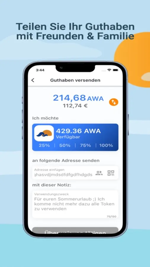 Diese App ist ein Wallet der Aparthotel Am Weststrand GmbH. Das Wallet speichert und zeigt Ihr AWA Weststrand-Guthaben. AWA ist ein digitaler Wert, welcher vom Aparthotel Am Weststrand als Zahlungsmittel akzeptiert wird. Sie erhalten AWA entweder über bestimmte Airdrop-Aktionen und / oder als Cashback für getätigte Umsätze im Aparthotel Am Weststrand Kühlungsborn. Sie können Ihr AWA Guthaben mit Freunden und mit Ihrer Familie teilen. Das Aparthotel Am Weststrand veröffentlicht über diese App attraktive Angebote für Ihre Auszeit in bester Strandlage.