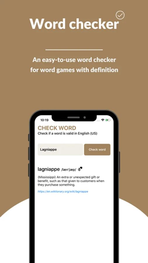 - An easy-to-use word checker for word games with definition and phonetic text/audio