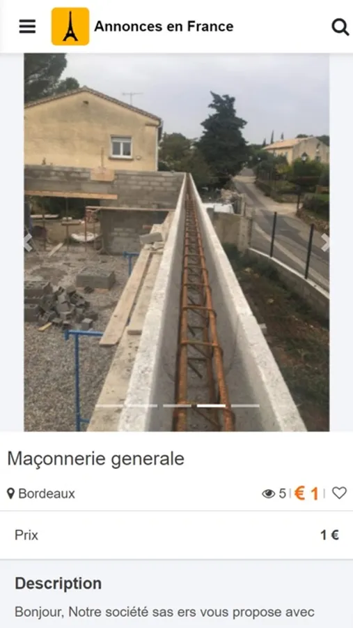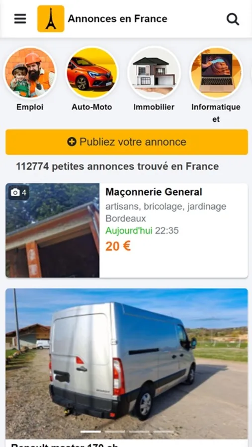 L’application Annonces en France offre un service gratuit et ne nécessite aucune inscription. Chaque annonce est contrôlée avant publication: nous nous assurons de la meilleure qualité des annonces publiées sur notre site. C'est pourquoi AnnoncesenFrance.fr est le site de petites annonces le plus pratique, le plus simple et le plus efficace en France.