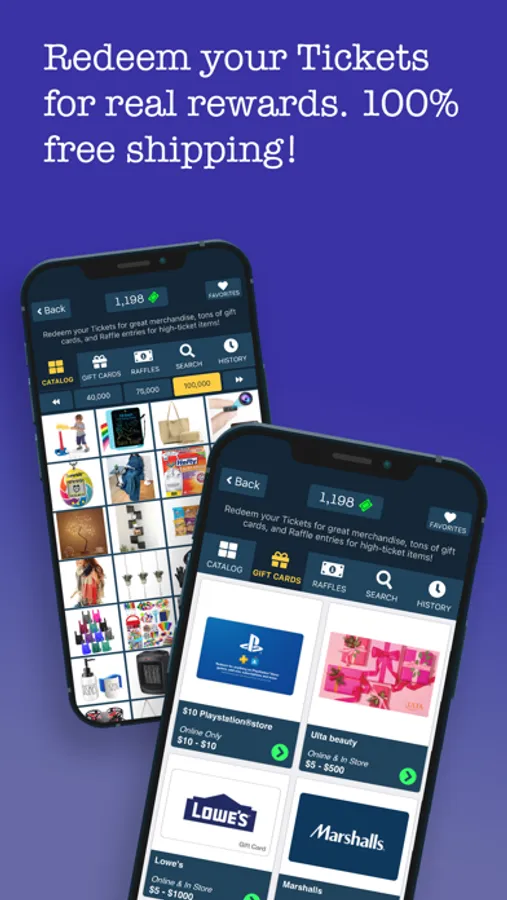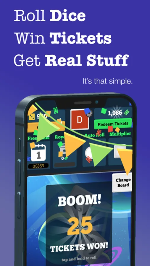 Roll your dice and play exciting mini-games and tournaments to win Tickets. Redeem your Tickets for real rewards and gift cards. It's like a real life arcade!