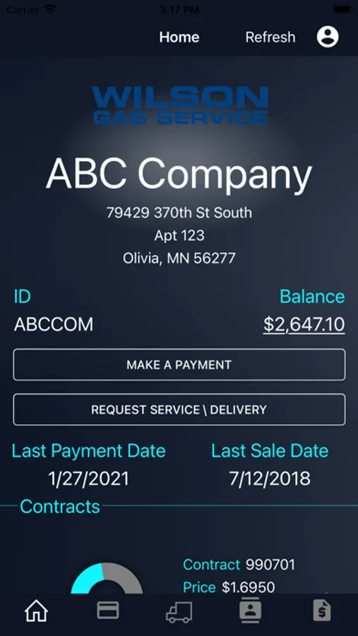 Information at your fingertips! This app gives you direct access to your account balance, location and contract information. It also gives you the ability to store and process payment and request service work and deliveries directly through the app.