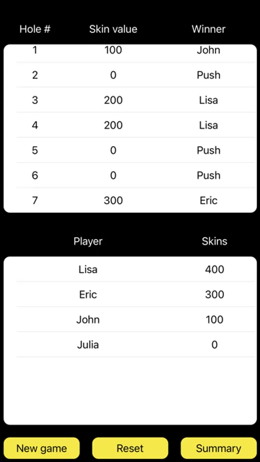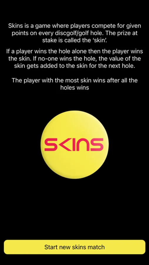 Skins is a game in golf / disc golf where players compete for a prize on every hole. The prize at stake is called the ‘skin’.