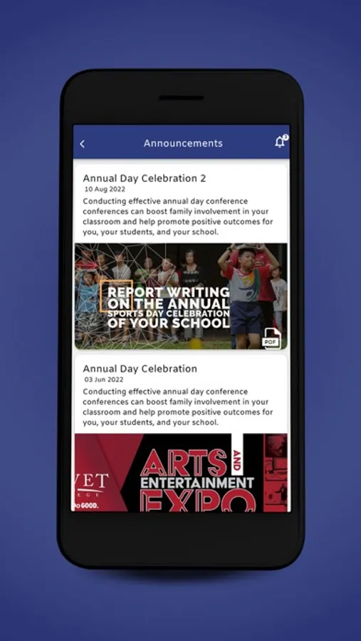 It is an application used for” Reborn’s” students & parents to follow up “KG’s” activities: