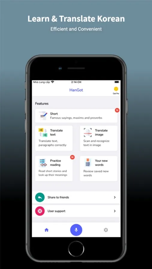 Hi ! HanGot is the leading Korean Translator and Learning App with a lot of outstanding features such as accurate voice translator, translate any text in Korean to english or Korean to english and extremely useful photo translating feature or practice reading, listening & reviewing Korean words.