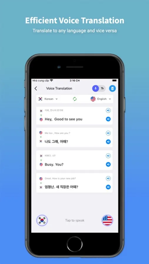 • Speech translator, learn speaking Korean or any language easily