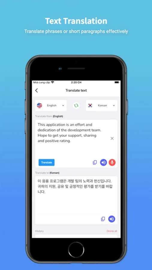 • Switch between different dialects from english to Korean or Korean to english.