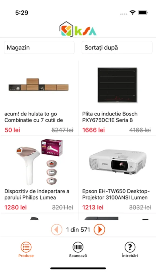 Descoperirea prețurilor produselor din magazin este mult mai ușoară acum cu aplicația KSA! Pentru a vedea reducerile, deschide aplicația KSA Retail, apasă butonul din mijloc pentru scanare, găsește codul de bare de pe produse, scanează-l și vei vedea detaliile despre produsul pe care l-ai găsit în magazin (preț, reducere, imagini de prezentare și descriere).
